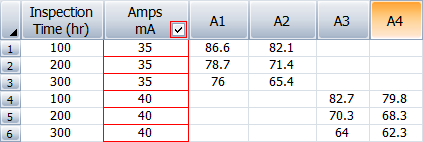 Unit ID(s) - the specific test unit being measured, with separate columns for each test unit. (You can rename a column by right-clicking the column heading and choosing Rename Column on the shortcut menu.)