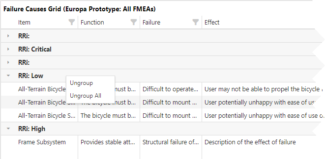 To undo the grouping, click the heading row within the grid and select either Ungroup or Ungroup All in the pop-up box. Alternatively, you can right-click any other column heading and select Ungroup All.