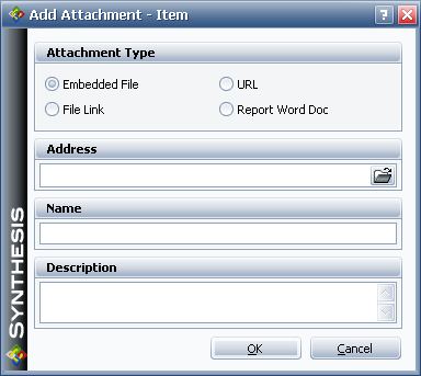 All Synthesis-enabled applications allow you to attach URLs and/or files that were created in other applications. This helps you to keep supporting documentation all together in the same place with your analysis. You can attach URLs and/or files to: