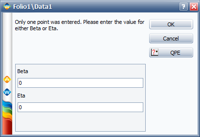 If you select to use a 2-parameter distribution, you will then be prompted to enter a value for one of the parameters. Remember that when using free-form data, you are supplying both the X and Y position for the entered data point. Given this point and a value for one of the parameters, the application will then solve for the other parameter. The parameter that you would like to solve for should be left as zero as shown below.
