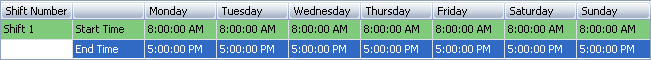 In the Shift Pattern window, specify 8:00 AM to 5:00 PM shifts seven days a week, as shown next. Click OK.