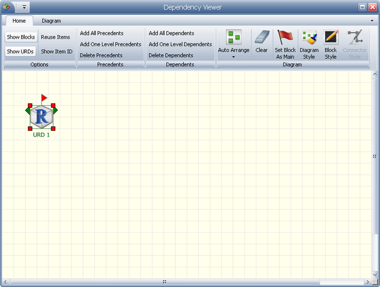 Clicking the Diagram View button in the window shown here will yield a diagram view that shows only the main item (in this case, the URD), which is marked with a flag: