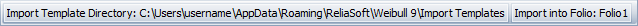 By default, template files will be stored at C:\Users\<username>\AppData\Roaming\ReliaSoft\<application>\Import Templates. This directory determines which templates will be displayed in the Import Template drop-down list in the control panel. It also sets the default path for saving any new templates you create.