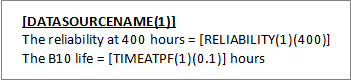 B10 Life: Select Time at Probability of Failure from the function list and enter 0.1 for the probability of failure input.