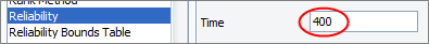 Reliability at 400 hours: Select Reliability from the function list and enter 400 for the time input.