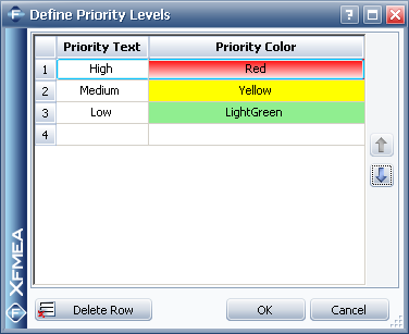 To add a new level to the bottom of the list, click inside the last row and type the label in the Priority Text column.