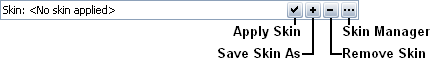 To create a skin, first specify the desired settings on all pages of the window. Next, save the settings as a skin by clicking the Save Skin As icon in the Skin field at the bottom of the window. Enter a name for the skin and click OK.