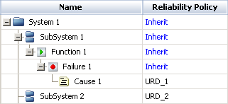 Before you can perform any calculations with the FMRA, you must choose a reliability policy type for each record in the hierarchy. If you choose the "Inherit" policy type, the record's reliability will depend on the record's dependents. If you choose any other policy type, the record's reliability will depend on the URD that is assigned to it. See Performing Calculations with the FMRA.