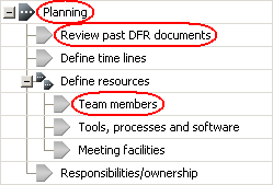 The DFR planner uses the following logic to determine the start, due and completion dates of higher-level gates based on their lower-level gates/actions.