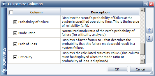 If the criticality analysis columns are not already displayed in the FMRA hierarchy, right-click any of the column headers, then click Customize Columns. Select the four columns shown next and click OK to save the changes.
