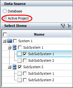 Active Project: With this option, you can query any or all of the items in the project that is currently active.