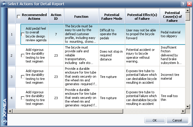 FMEA Standard creates an FMEA spreadsheet that includes information from the most basic elements of most FMEA analyses. This is a very basic style and should only be used when you are not required to meet published guidelines for the current profile.