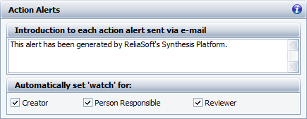 Introduction to each action alert sent via e-mail. This field allows you to specify the default text (up to 1,000 characters) that will be used at the beginning of each action alert e-mail sent from this database.