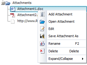 For most applications, project attachments can also be displayed/managed from the Attachments folder in the current project explorer.