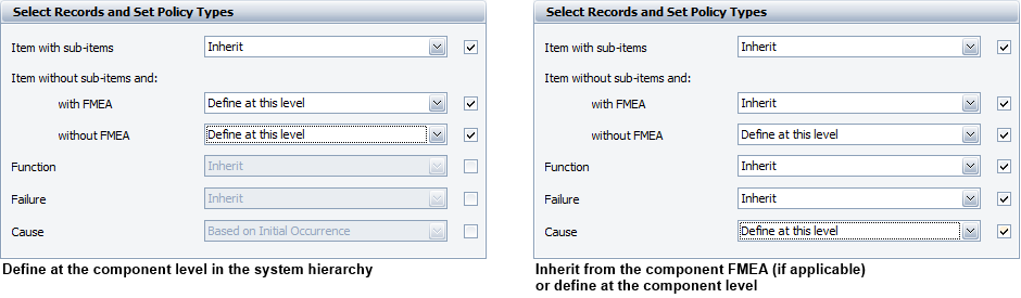 If you select Based on Failure Probability, Based on Initial Occurrence or Based on Revised Occurrence, the following logic applies. (See Using Rating Scales to Set the Reliability Policy.)