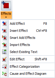 In an FMEA or RCM, the effects typically state the consequence of the failure on the system or end user. Some of the features for working with effects will depend on the FMEA structure that has been selected for the current project.