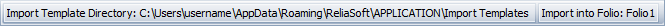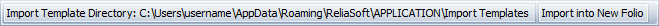 By default, template files will be stored at C:\Users\<username>\AppData\Roaming\ReliaSoft\<application>\Import Templates. This directory determines which templates will be displayed in the Import Template drop-down list in the control panel. It also sets the default path for saving any new templates you create.