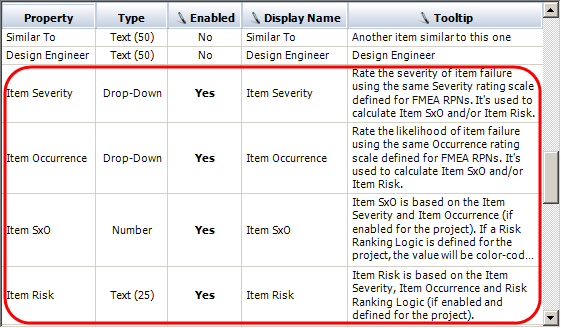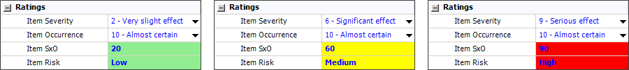 New in Version 11, the Item Risk feature provides a quick way to evaluate the risk for items in the system hierarchy, using the same Severity and Occurrence rating scales that are available to calculate RPNs in FMEAs. The ratings can be used to calculate one or both of the following metrics:
