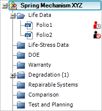 In projects that use a current project explorer to manage analysis data, the status icons are displayed next to the item’s name in the current project explorer, as in the example shown next.