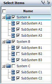 The first form will have a header based on the properties defined for System A and will contain the analysis data for System A, followed by the analysis data for Subsystem A1, Subsystem A2, and then Subsystem A3. A grey row with the item’s name will separate each item’s analysis within the same spreadsheet.