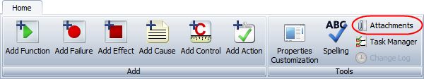 For records in an analysis hierarchy (such as FMEA or functional failure analysis), the attachment icon can also be accessed from within the record properties window.