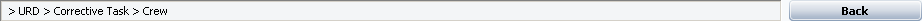 As you change selected items, each previous item that you selected will be added to the “path” of recent selections at the top of the window; click Back to go back through the path to the previously selected items. For example, the following picture shows a path in which the user started with the URD, then proceeded to its corrective maintenance task, the crew for that task and the logistic delay for that crew (not shown in the path because it is the current selection). The button now provides a quick way to go back through those same resources in reverse order if needed.