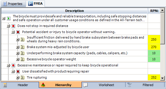 In all three FMEA views, you also have the option to use color to highlight issues based on priority. Choose FMEA > Tools > Highlight Priority to turn the colors on or off.