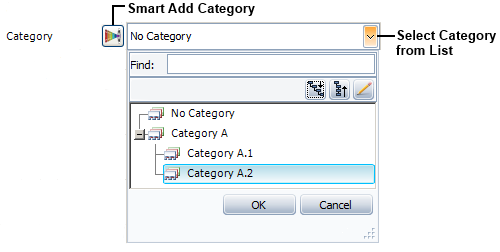 This topic discusses several options that are available for assigning categories to system hierarchy items: Smart Add Category, Select from Category List or Create Categories.