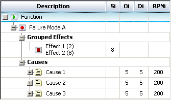 The effects will be entered as separate records but displayed together in the FMEA; the software calculates RPNs based on the highest severity rating.