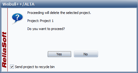 Whenever you delete a project from a database, a confirmation window like the one shown next will appear.