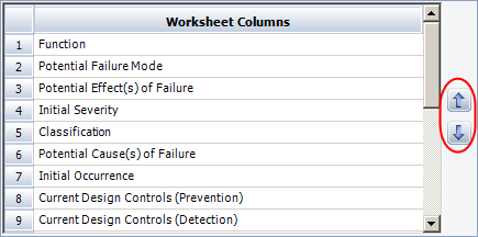 For many of the analyses that use a worksheet (including FMEAs, PFD worksheets, DVP&Rs and DRBFMs), the Worksheet Columns page of the interface style allows you to specify the order in which the property columns will be displayed. These preferences will be saved with the project so the column order will be the same for all users who view the analysis.