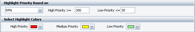 If you select RPN, Severity, Occurrence or Detection, you can specify the High Priority >= and Low Priority <= thresholds and Select Highlight Colors.