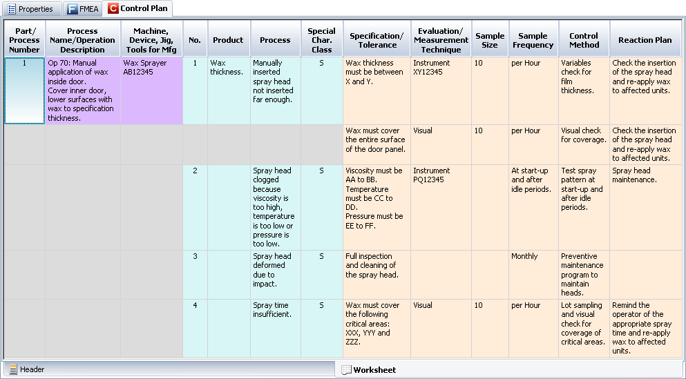 A PFD worksheet records detailed information, including process characteristics (inputs) and product characteristics (outputs), for each step of the manufacturing or assembly process. The complete PFD worksheet provides a structure for preparing process FMEAs (PFMEAs) and control plans.