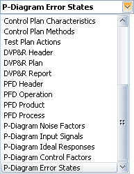 You can then select an Excel file and import the data from Excel. If a P-Diagram does not already exist, then one is created. If a P-Diagram already exists, then the new records are added to the end of the affected elements.