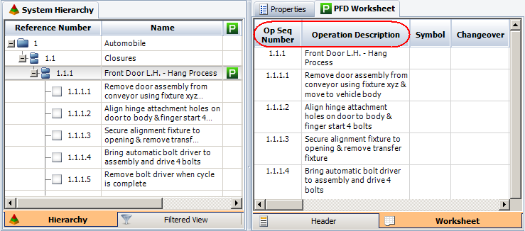 New system hierarchy items will be appended to the bottom of the PFD worksheet, while any modifications to the reference numbers and descriptions will be reflected in the existing records.
