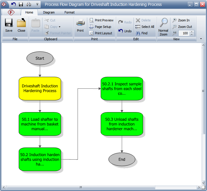 Tip: If you want to use the process flow diagram as a starting point for preparing process FMEAs (PFMEAs) or control plans, then the PFD worksheet may be a more appropriate tool. The PFD worksheet integrates the chart into a worksheet that records more detailed information about each step in the process and it allows you to synchronize the relevant information with the PFMEA or control plan analysis. (See PFD Worksheets.)