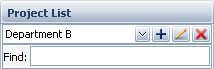The project list can utilize the same project filters that are available in many other locations throughout ReliaSoft desktop applications. For example, with the filter shown below, the project list will show only projects belonging to Department B.