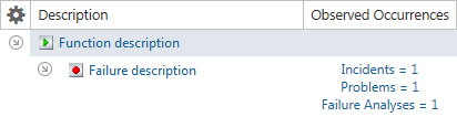 To view the quantity of XFRACAS records that have been reported for a failure for a specific item, make sure the Observed Occurrences column is displayed in the FMEA hierarchy. (See FMEAs.)