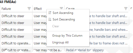To sort by a column, right-click its heading and select Sort Ascending or Sort Descending in the pop-up box that appears. Alternatively, you can click the column heading to sort in the descending direction. To reverse the sort order, click again.