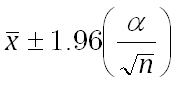 If we assume Alpha equals 0.05, we need to calculate the area under the standard normal curve that equals (1 - Alpha), or 95 percent. This value is ± 1.96. The confidence interval is therefore: