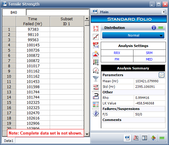 To obtain the strength distribution, use the tensile strength data from Table II. Create a new Weibull++ standard folio and rename it to "Tensile Strength."