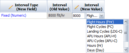 Edit the text in the Interval (New Value) column so it will match either the name or the abbreviation of a predefined unit. For example, if the Version 3 task record contains a misspelling for "2000 fliight hours," you can click inside the cell and remove the extra i.